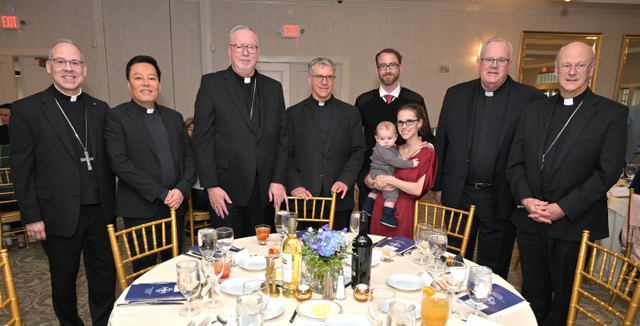 Bishop Betancourt, Msgr. Cuong Pham, Archbishop Christopher Coyne, Very Rev. Peter Kucer, Daniel O’Connor, Regina O’Connor and Patrick, Very Rev. Martin Rooney, Bishop Richard Reidy | Photo courtesy of Phil Farnsworth