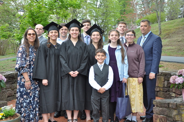 Earning a college degree is a special moment in a person’s life: the culmination of years of hard work. It’s especially exciting to have two members of your family graduating with you. This was the case this past April 26, when sisters Mary, Sara, and Elizabeth Shopa traveled from Georgia to Connecticut to attend Holy Apostles College and Seminary’s 67th Commencement and Baccalaureate Mass and, together, received their diplomas after earning Bachelor of Arts degrees in English in the Humanities. In attendance to see his sisters graduate was their older brother, Steven, himself a 2020 graduate of Holy Apostles with a Bachelor of Arts degree with double majors in History in the Social Sciences and Philosophy.